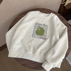 抽象梨印花圆领长袖卫衣女秋冬新款日韩休闲宽松显瘦百搭打底上衣