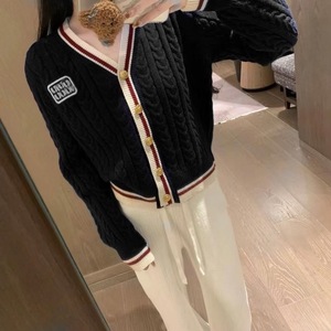学院风撞色麻花开衫毛衣外套女春秋冬新款韩版宽松百搭短款上衣潮