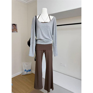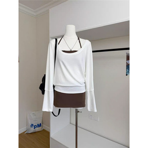 现货慵懒风薄款U领防晒罩衫长袖T恤女早秋松弛感miu系宽松蝙蝠袖