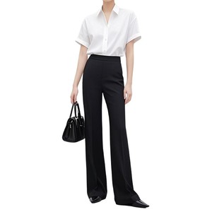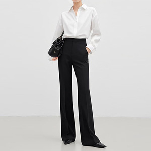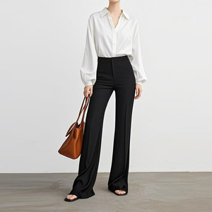 2025春秋高级感微喇裤黑色纯色百搭显瘦微喇垂感气质通勤西装女裤