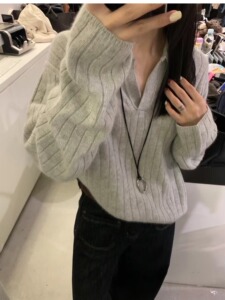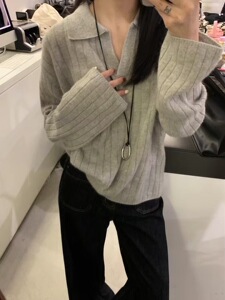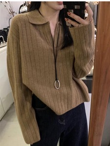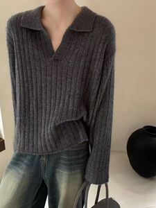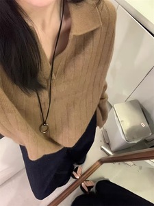2025韩系秋冬polo领坑条高级感针织衫上衣外套慵懒风套头女式毛衣