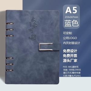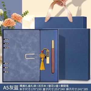 A5灰蓝+旋转U盘+笔芯+金属笔【高档礼盒礼袋】