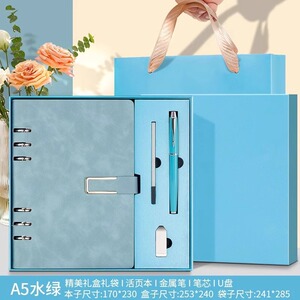A5水绿+旋转U盘+笔芯+金属笔【高档礼盒礼袋】