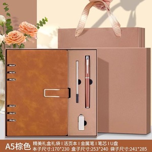 A5棕色+旋转U盘+笔芯+金属笔【高档礼盒礼袋】