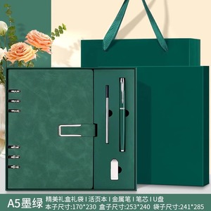 A5墨绿+旋转U盘+笔芯+金属笔【高档礼盒礼袋】