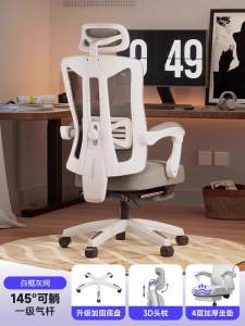 豪华款【白框灰网】带搁脚|升降腰靠|145°可躺|乳胶定型棉坐垫|SGS认证3级气杆