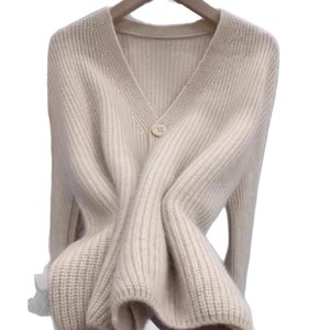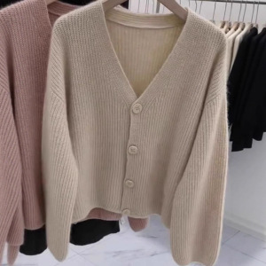 慵懒风软糯v领长袖开衫女秋冬季单排扣设计感时尚针织衫上衣外套
