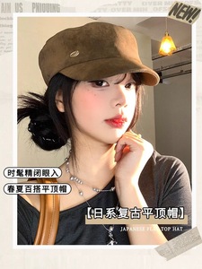美拉德麂皮绒复古贝雷帽女日系大头围平顶马术帽显脸小鸭舌帽子