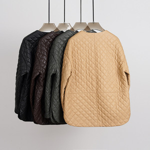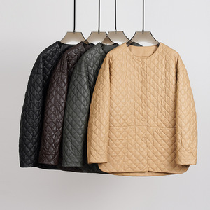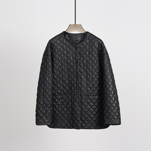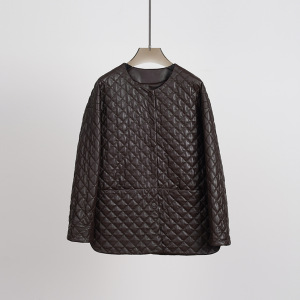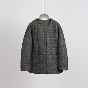 瑞士订单To*me 大表姐菱形格植鞣绵羊皮蚕丝绵填充时尚皮衣外套女