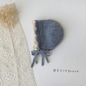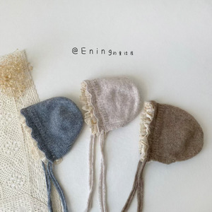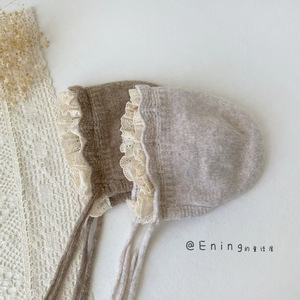 蕾丝边公主宝宝帽子秋冬季新款女童护耳保暖防风毛线帽系带宫廷帽