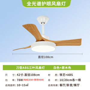 【全光谱】42寸-78W-原木色-刀型ABS三叶风扇灯