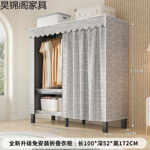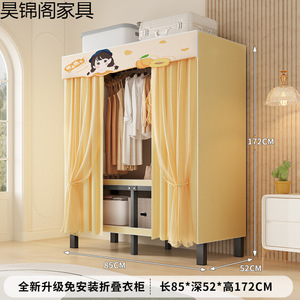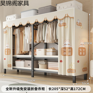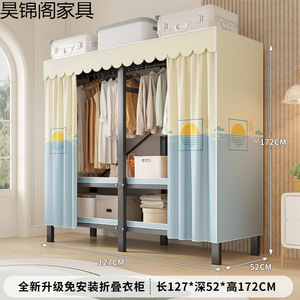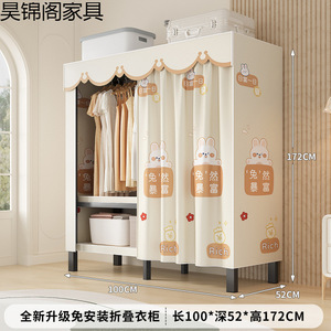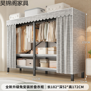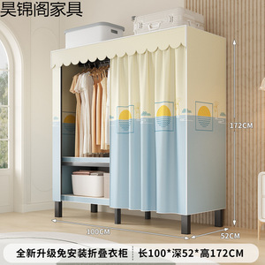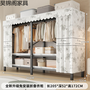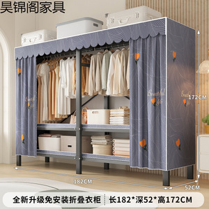 简易布衣柜新款免安装折叠加粗加厚结实一体式货架全钢架收纳柜子