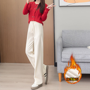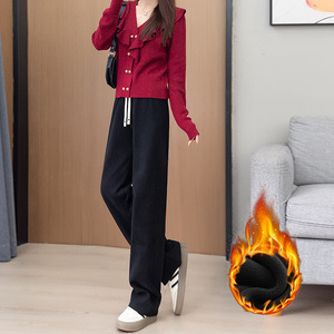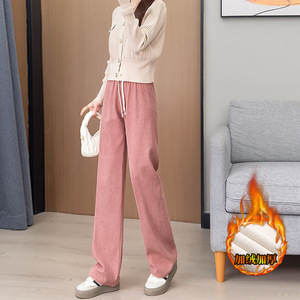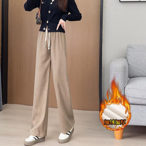 秋冬季外穿阔腿裤女加绒加厚高腰显瘦直筒裤保暖宽松大码休闲裤子