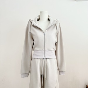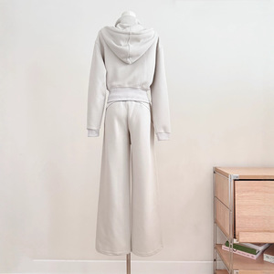 lu系女孩灰色运动休闲套装连帽短款外套阔腿长裤两件套