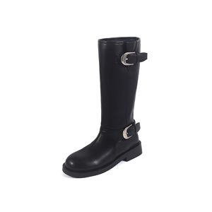 靴子女长筒靴2025秋冬新款粗跟圆头拼接西部靴褶皱堆堆靴骑士靴
