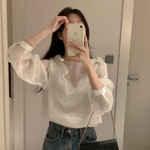 韩国INS早秋温柔浪漫气质蝴蝶结系带吊带背心长袖衬衫两件套装女
