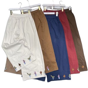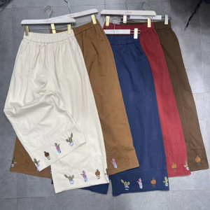 森系刺绣可爱甜美松紧腰休闲裤女秋季新款宽松减龄百搭宽松阔腿裤