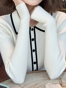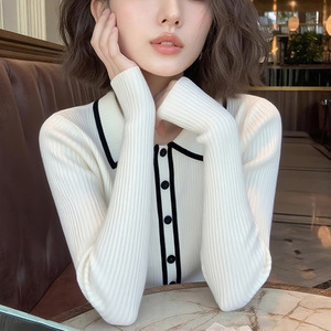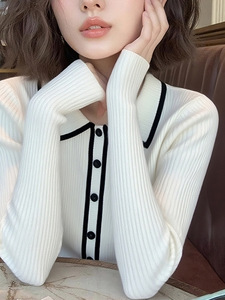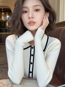 时尚洋气减龄白色Polo领长袖针织衫女秋季款休闲百搭通勤小众上衣