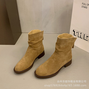 法式复古尖头超火小短靴女2025秋冬新款单靴西部牛仔粗跟堆堆靴子