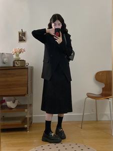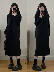 2025年新款大码女装胖mm秋季时尚宽松百搭a字连衣裙+西装马甲套装