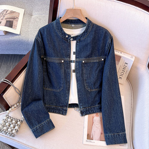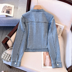 浅蓝色圆领牛仔外套女短款2025年早春秋季新款超好看独特漂亮夹克