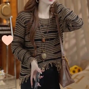 大码不规则流苏长袖针织衫女2025秋季新款宽松显瘦设计感小众上衣