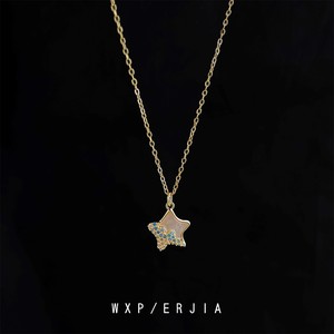 法式轻奢微镶锆石贝壳海星项链时尚通勤厚镀18K设计感扇形锁骨链