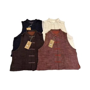 中国风无袖上衣新款双层汉麻包边盘扣马甲