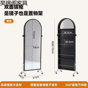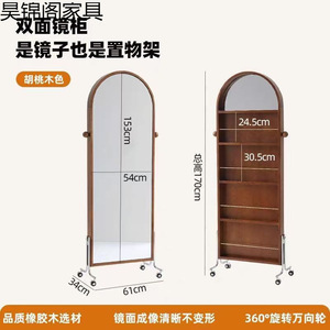 中古实木可移动全身镜家用置物架杂志架复古落地旋转穿衣镜全身镜