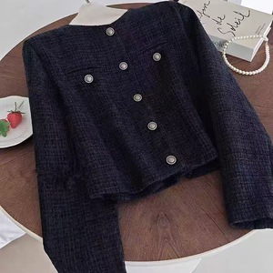 今年流行藏青色小香风西装外套女2025春秋新款气质名媛休闲上衣