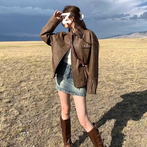 棕色皮衣外套女2025秋冬新款美拉德美式复古pu皮小个子机车服上衣