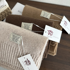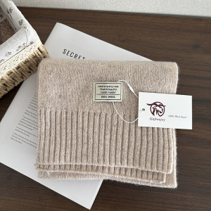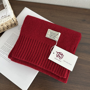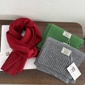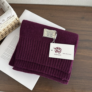 优雅绵羊毛100%羊毛围巾纯色百搭男女圣诞冬季保暖针织围脖加长新