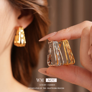 欧美跨境真金电镀方形耳圈时尚个性冷淡风耳环小众高级感夸张耳饰