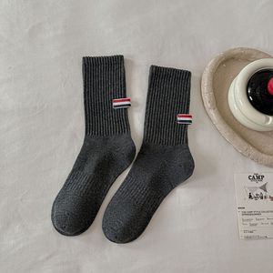 袜子女春秋中筒袜后跟条纹布标堆堆袜tb潮牌韩系简约百搭纯棉长袜