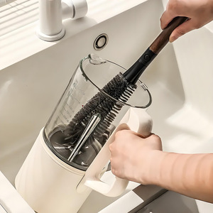 破壁机清洁刷可拆卸长柄软毛杯刷二合一胡桃木纹杯刷可弯曲奶瓶刷