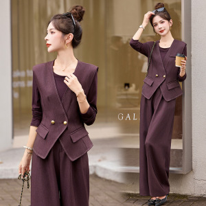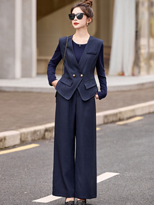 2025秋季新款时尚套装马甲针织衫优雅阔腿裤减龄三件套装YB8608