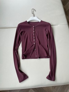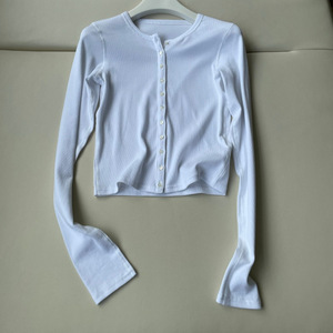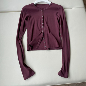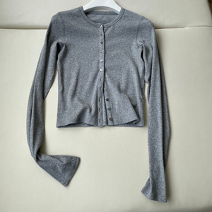 2025秋季新款简约圆领长袖罗纹针织纯色开衫上衣批发