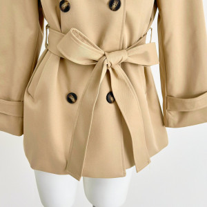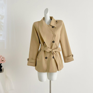 跨境2025秋网红新款英伦风双排扣韩版通勤风衣外套