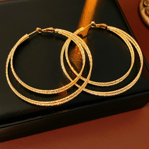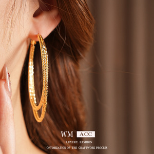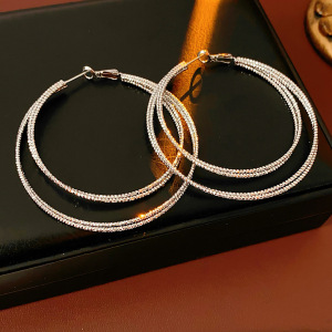 真金电镀银针圆形双层耳圈时尚简约个性冷淡风耳环小众高级感耳饰