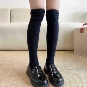 袜子女长筒袜秋冬过膝袜白色小腿堆堆袜韩系简约高筒袜纯棉女士袜