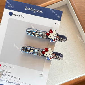新款时尚高级感水钻猫咪刘海发夹甜美少女心侧边夹百搭发卡发饰