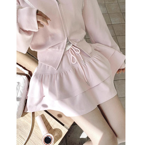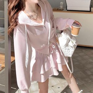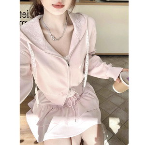登机套装/三版本双色蕾丝卫衣连帽外套卫裤半裙2025秋季两件套潮