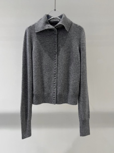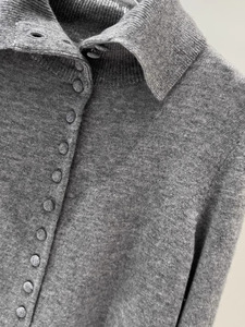 艾**丝2025秋新款时尚简约翻领长袖羊毛针织衫开衫毛衣女AR804173