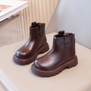女童马丁靴2025冬季新款英伦风女孩洋气短靴软底皮靴儿童加绒棉靴