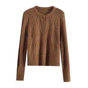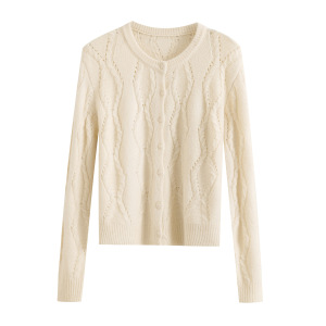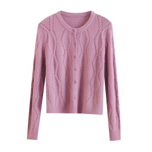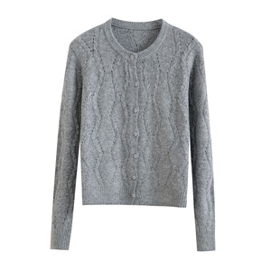 585919-25夏季新款 法式复古小香风圆领单排扣长袖软糯开衫针织衫