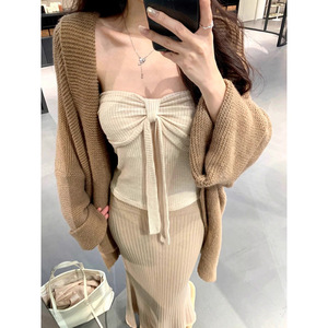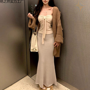 气质氛围感针织开衫韩版温柔风百搭毛衣开衫针织鱼尾半身长裙套装