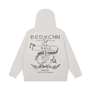 美式复古连帽拉链针织开衫毛衣男女宽松慵懒外套情侣上衣2025秋季