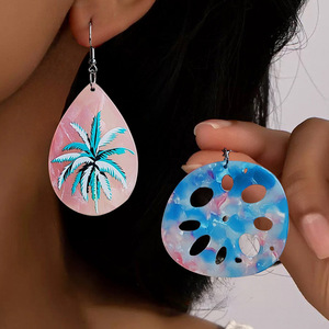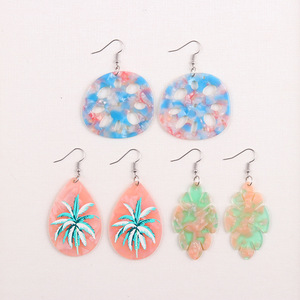 跨境度假风醋酸耳钉多色不规则几何亚克力耳环时尚耳坠耳饰品女