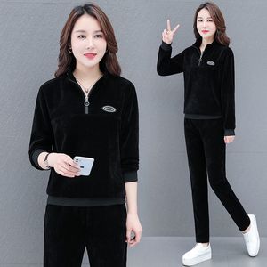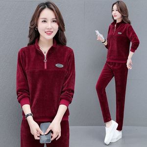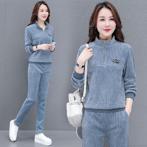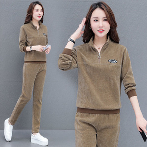 套头灯芯绒休闲运动套装女2025春秋季新款宽松大码时尚洋气两件套