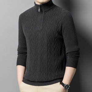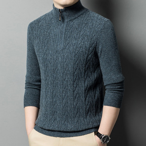 秋冬男士拉链半高领毛衣100%纯羊毛450g时尚精品打底衫男式羊毛衫